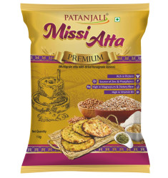 Patanjali missi atta a unique combination of whole wheat, gram and barley. It is a special kind of atta which consists of three grains which are whole wheat, barley and gram. These are grounded uniformly for proper mixture of these grains which results in fine flour. It has lot of health benefits and provides nutrition.