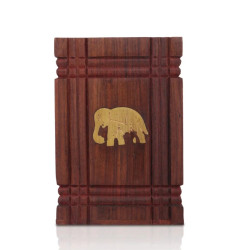 Elevate your desk decor with our wooden pen jar featuring exquisite cutter work and an inlaid elephant design.
