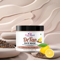 Pink Root Detan face mask with Glutathione reduces tanning and pigmentation. Enriched with the natural goodness of Vitamin C, Orange Peel Powder & Clove Oil, this detan face pack brightens the skin and fights pigmentation, soothes redness or inflammation caused due to sun exposure combats acne and helps prevent further breakouts and blemishes. It helps improve skin tone as this Detan Face Mask helps in Tan Removal.