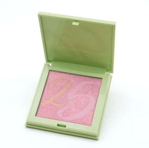 • Gold foil commemorative "25" on top of the compact featuring both a blush & highlighter.