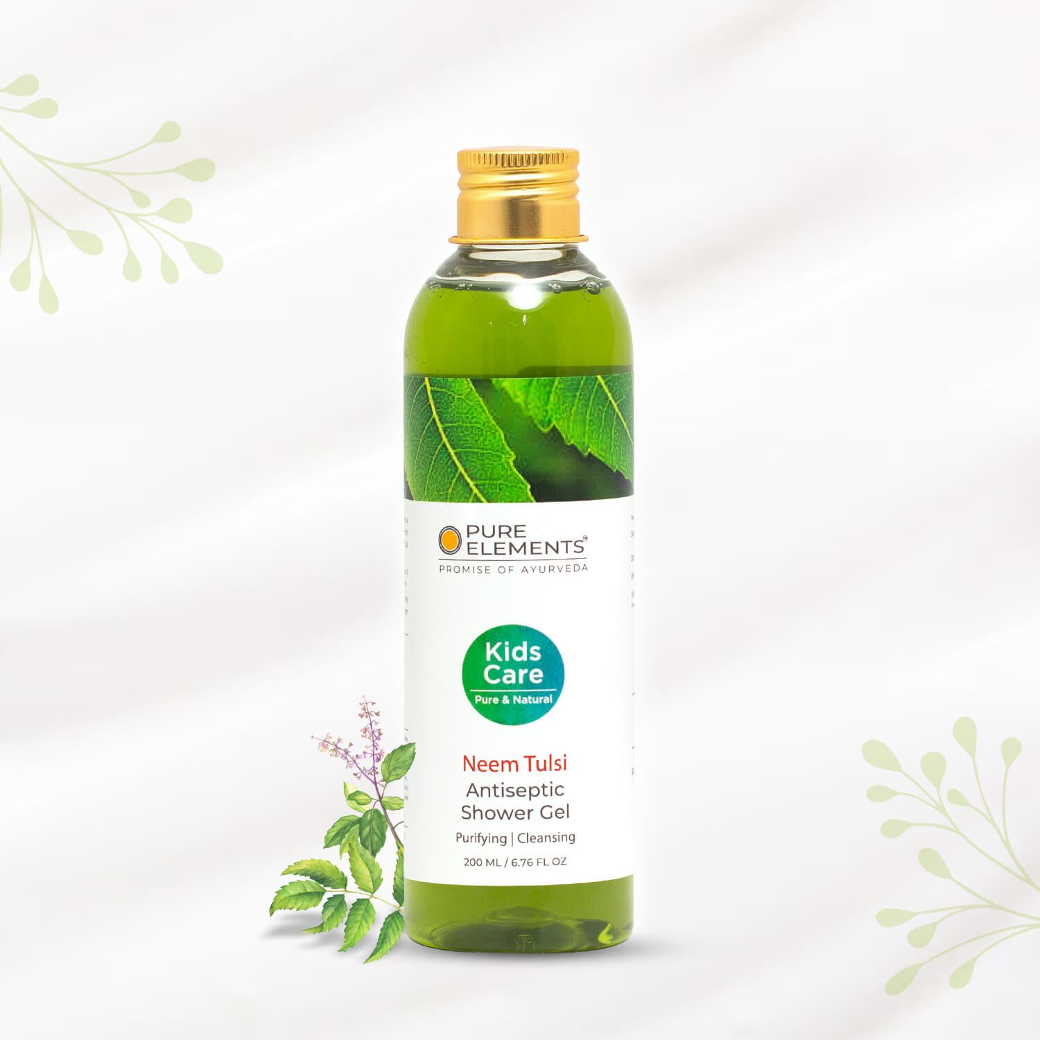 Pure Elements – Neem Tulsi Shower Gel is a soap free ultra-mild body cleanser enriched with Botanical Extracts of Neem and Tulsi Leaves and Triphala. A strong antiseptic and anti-bacterial action of these herbs fights germs and purifies the skin. The rich and soft foam of this body cleanser help retain moisture and sooth child’s delicate skin, leaving it feeling clean, soft and healthy. This shower gel cleanses without drying and is gentle enough for child’s sensitive skin.