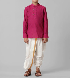 Ramraj Boys Breeze Cotton Purple Kurta with Cream Elastic Panchakacham Combo COT4 :