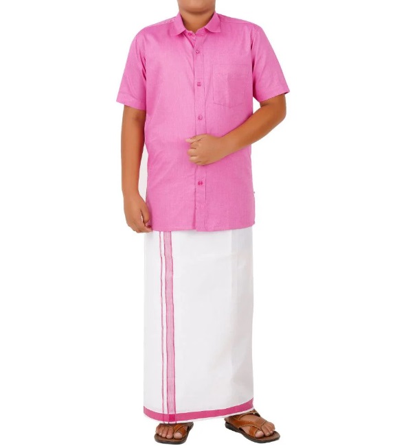 Ramraj Boys Matching Dhoti & Shirt Combo Pink OX33 :