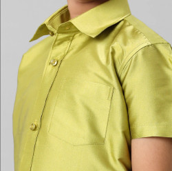 Boys Silk Cotton Lemon Green Half Sleeves Shirt K44