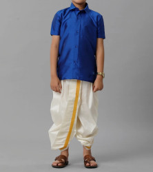 Ramraj Boys Silk Cotton Royal Blue Half Sleeves Shirt with Soft Silk Panchakacham Combo K5 :