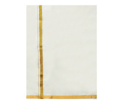 Mens Adjustable Cream Single Dhoti with Gold Jari Border