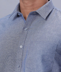 Ramraj Mens Linen Cotton Shirt Grey Blue LF6 :
