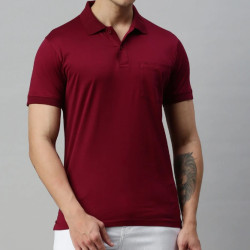 Ramraj Mens Maroon Smart Fit Mandarin Collar T-shirt MM7 :