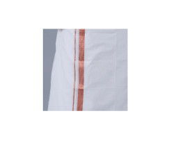 Ramraj Mens Premium Cotton White Double Dhoti with 1 inch Copper Jari Border Ribhu :