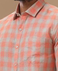 Mens Pure Linen Orangy Green Checked Shirt_LS53