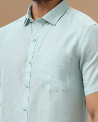 Ramraj Mens Pure Linen Shirt Blue :