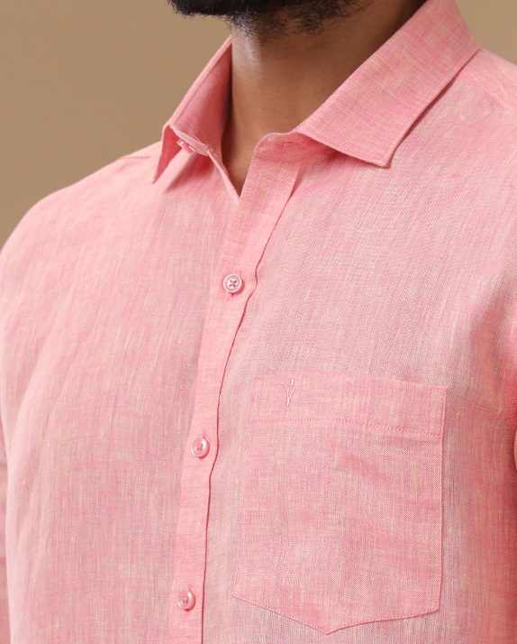 Ramraj Mens Pure Linen Shirt Pink :