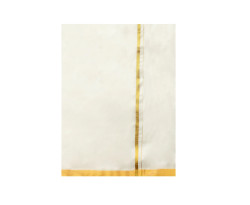 Ramraj Mens Silk Cream Double Dhoti 1 1/2 inch Gold Jari Border Suba Vivaga :