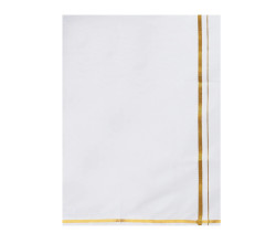 Mens White dhoti with Gold Jari Border .Traditional wear for wedding and religious festivals. The wedding dresses capture the grace, elegance, and edge of the sophisticated modern Look. The fine quality of Cotton yarns used makes the wearer feel More comfortable. Shop south Indian traditional Single Dhoti dress online.