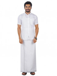 Ramraj Pure Linen White Half Sleeves Shirt with Dhoti Combo 5445 :