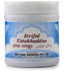 Rex Itrifal Ustukhuddus is a Unani medicine that has potential health benefits in headache and is useful in migraine. This formulation contains Triphala and Ustukhuddus as main ingredients. Ustukhuddus has beneficial effects on brain and nerves and Triphala acts as detoxifier and helps in digestive ailments. Due to Triphala, it is beneficial for constipation as well. Its continuous use is beneficial for maintaining black hair.