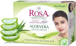 Rosa Aloe Vera Bathing Bar is formulated in a unique way to give you clear and glowing skin. Enriched with tea tree oil, this soap has antibacterial properties that treats blemishes. Aloe Vera hydrates and moisturizes your skin. Daily use of Rosa Aloe Vera Bathing Bar will leave your skin healthy & smooth. Available in 20gm & 100gm.