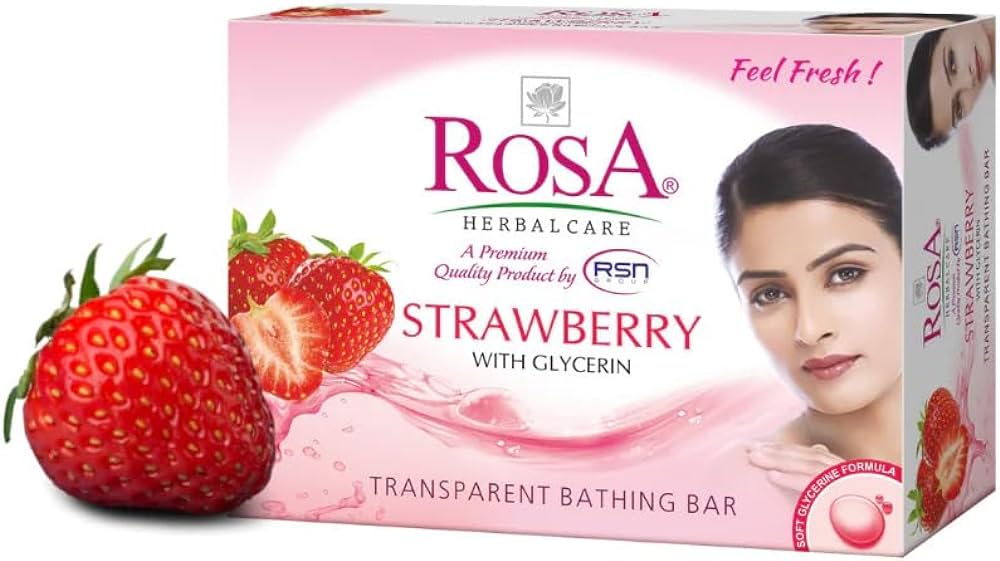 Get soft, bouncy & moisturized skin with Rosa Strawberry bathing bar. Enriched with Strawberry extracts & mild glycerin, this soap is extremely gentle and leaves you with refreshed and cleansed skin.
