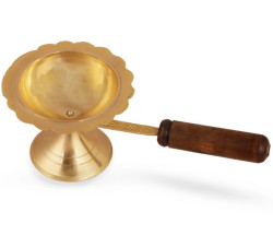 Sambrani Stand - 2.5 x 7.5 Inches | Brass Dhoopakal with Wooden Handle/ Dhoop Stand/ Dhoop Holder for Pooja