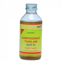 Karpooradi Thailam is a pain-relieving, counter-irritant oil used in the treatment of rheumatism, muscle pain and cramps.