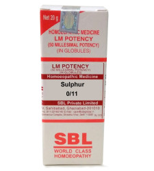 SBL Sulphur is a homeopathy medicine. It is made from sulphur springs which are well suitable for skin ailments such as pain, redness, burning, and inflammation. It is from mineral kingdom. It is also beneficial in treatment of stomach disorders like acidity and gastric issues.