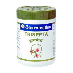 Information: Venturing out in the cold weather, roaming on the bike in the rainy and winter seasons without any protective gear, eating fried and sour foodstuffs and staying awake at night are all harmful for the body and affect the blood circulation by causing congestion. This results in internal swelling of the nose, ear and throat, change of voice, swelling of glands and joints. Trisepta consists of triphala powder, nimb, kanchanar, shuddha gandhak, tankan lahi & shuddha guggal that clears congestion & reduces swelling. Trisepta works on internal & external swelling.