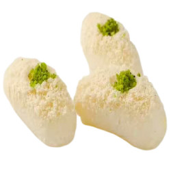 Cham cham is a Bengali sweet made by curdling milk and then shaping the coagulated solids to cylindrical shape pieces.