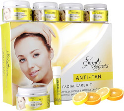 Anti-Tan Facial Kit repairs the damage done by the harmful UV sun rays and leaves you with spotless, fair and radiant skin. The products in this facial kit lighten blemishes, remove dead cells and leave your skin clear and radiant. Effective herbs in the formulation have antioxidant properties that protect the skin from free radicals and soothe skin irritation. The anti-tan facial kit has products that gently exfoliate skin and help slough off dead cells to fade away the tan while keeping the skin soft and hydrated. This anti-tan facial brightens, lightens and evens out dull, patchy and damaged skin and reveals visibly clear skin giving you that perfect radiant look.