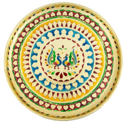 The Minakari design tray is a round-shaped tray that is commonly used for pujas, religious ceremonies, or as a decorative piece in homes.