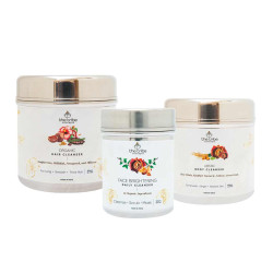 Our “Face Brightening Daily Cleanser” is made with 12 organic tribal forest sourced ingredients which are amazing for skin care. It helps in skin brightening, getting a lighter and even tone, for spot reduction, tan removal, blackhead removal and imparts a young, vivacious and glowing skin.