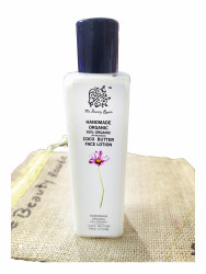 BENEFITS: An nourished coco butter lotion made with 95% organic cold pressed with pista oil and sweet almond oil that deeply nourish dry and dehydrated skin these ulta-rich formulation helps protect from dryness, roughness, dullness, rejuvenates and restores skins natural long lasting. The smoothening merge of coco butter and shea butter helps in reviving rough, dry and dullness skin for a naturally healthy appearance Tulsi leave juice , alluvial protect and hydrate the skin leaving smooth, soft, comfortable, glowing and shine.