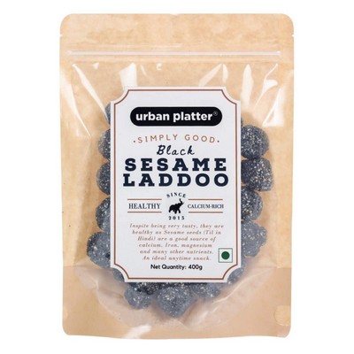Urban Platter Black Sesame Laddoos are made from roasted sesame seeds and melted jaggery pounded together and then shaped into round Ladoo.