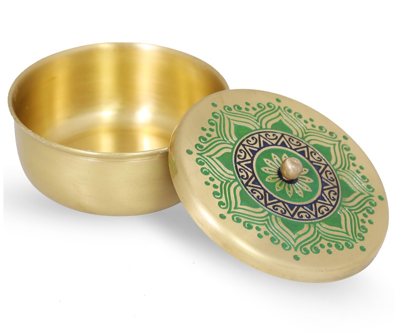 Utsav Green Brass Nut Serving Bowl with Lid :