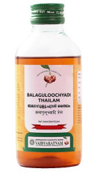 Balaguloochyadi Thailam is an Ayurvedic oil,used in Ayurvedic treatment of gout arthritis.It is used for external application. This oil is formulated based on Kerala Ayurveda principles.