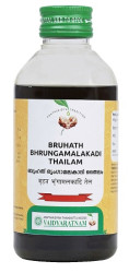 Vaidyaratnam Bruhath Bhrungamalakadi Thailam is an ayurvedic medicine that is primarily used for the treatment of Hair Loss. The key ingredients of Vaidyaratnam Bruhath Bhrungamalakadi Thailam are Coconut oil, Amla, Bhringaraja