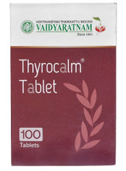 Vaidyaratnam Thyrocalm Tablet is an ayurvedic proprietary medicine for hyperthyroidism. The tablet is beneficial in managing the triodothyronine (T3) and thyroxine (T4) levels in the body.