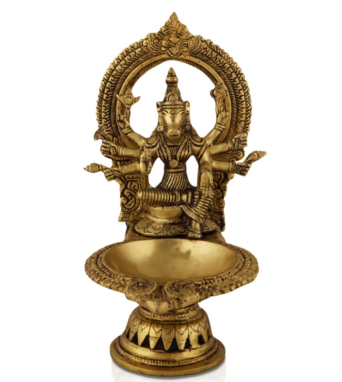 Crafted with intricate details and adorned with an antique finish, this exquisite Brass diya not only serves as a source of light but also embodies the energy and blessings of the goddess Varahi.
