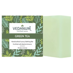 Vedanum Green Tea Handmade Soap, fortified with matcha extract, is a skin-loving luxury richly formulated with phytonutrients, healing emollients, and humectants to replenish 24 hours of moisture and restore skin cells.