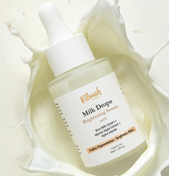 Gentle on skin. Tough on dark spots. Vilvah's Milk Drops Brightening Serum is safe for beginners, teenagers, pregnant women & new moms. Made using Rice Milk Extract, Marine Algae Extract, Alpha Arbutin & Hyaluronic Acid, it effectively reduces dark spots & hyperpigmentation and brightens the skin in just 4 weeks.
