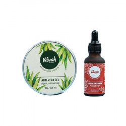 Our beautifying serum is rich in anti-oxidants and our Aloevera Gel is a great moisturizer for troubled skin.