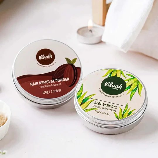 Vilvah Stores Hair Removal Combo : Vilvah’s hair removal powder is an unique formulation with nourishing ingredients that helps you get rid of unwanted hair easily in minutes without any itching & irritation . A perfect alternative to shaving & waxing. It also gently exfoliates dead & tanned skin, leaving the skin brighter & smoother. The aloevera extracts maintain the pH balance, coffee powder brightens the skin and Vitamin E soothes the skin.