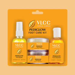 VLCC Pedi Glow Foot Care Kit:VLCC Pedi Glow Foot Care is a complete Foot Care Kit that keeps your feet clear, soft and smooth. Each formulation is inspired by nature, made with active herbs, exfoliating fruit extracts, and plant derived oils. VLCC Pediglow kit provides perfect solutions for all foot problems for men and women.
