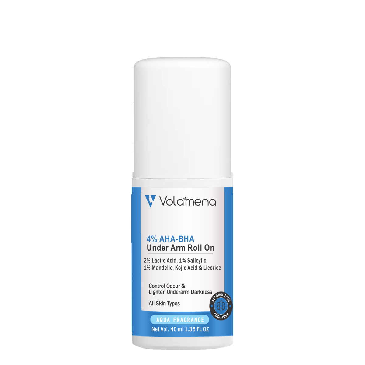 Volamena AHA BHA Underarm Roll on with Aqua Fragrance daily use roll on is perfect for lighter, even-toned underarms, it also reduces dark spots, pigmentation & dark skin in sensitive underarm area.