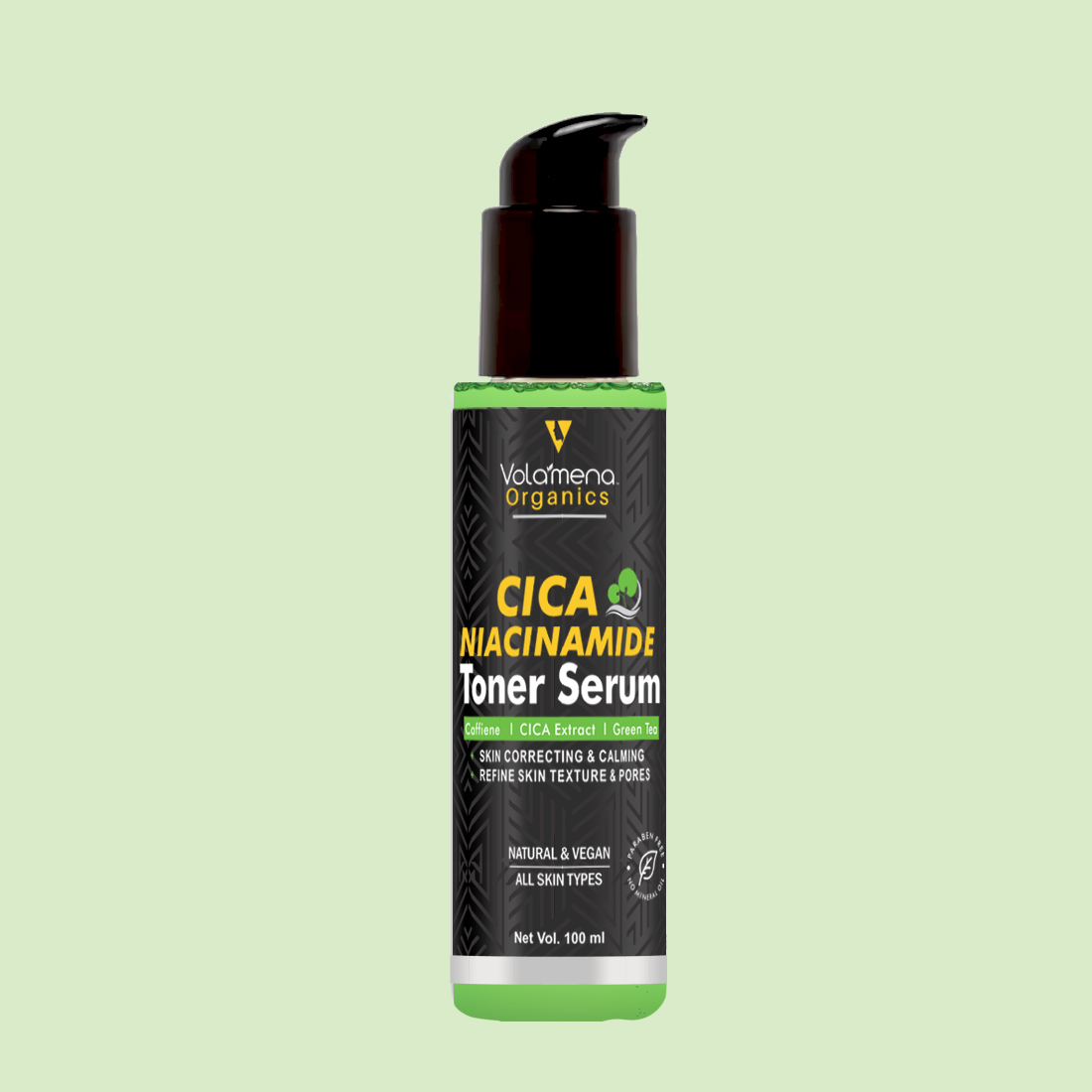 Volamena CICA & Caffine Toner serum CICA is an active ingredient that tightens and unclogs pores, it reduces blemishes and protects the skin from environmental damage.