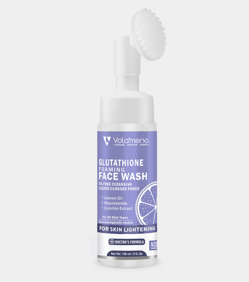 Volamena Glutathione foaming Face wash enriched with Glutathione, Niacinamide, Cica water & Lemon oil gently cleans your skin without drying it out, removes micro-particles of dirt and instantly refreshes the skin.