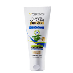 Volamena young feel Anti-aging Creamy Face Wash is enriched with a gentle naturally driven surfactant that cleanses & rejuvenates without over-drying your skin. With potent antioxidants like Vitamin C & natural Aloe vera, this cleanser works for both men and women to rejuvenate and refine the skin. All skin types will see the Anti-aging benefits like Wrinkle reduction, reduces blemish, pore minimization and hydrated firm younger-looking healthy skin with this professional-grade Hyluronic acid formula.