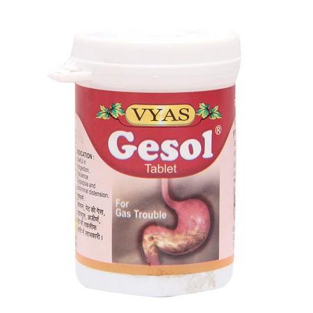 Vyas Gesol Tablet is an ayurvedic medicine that is primarily used for the treatment of indigestion, loss of appetite, gastritis, intestinal worms, heartburn and acidity.