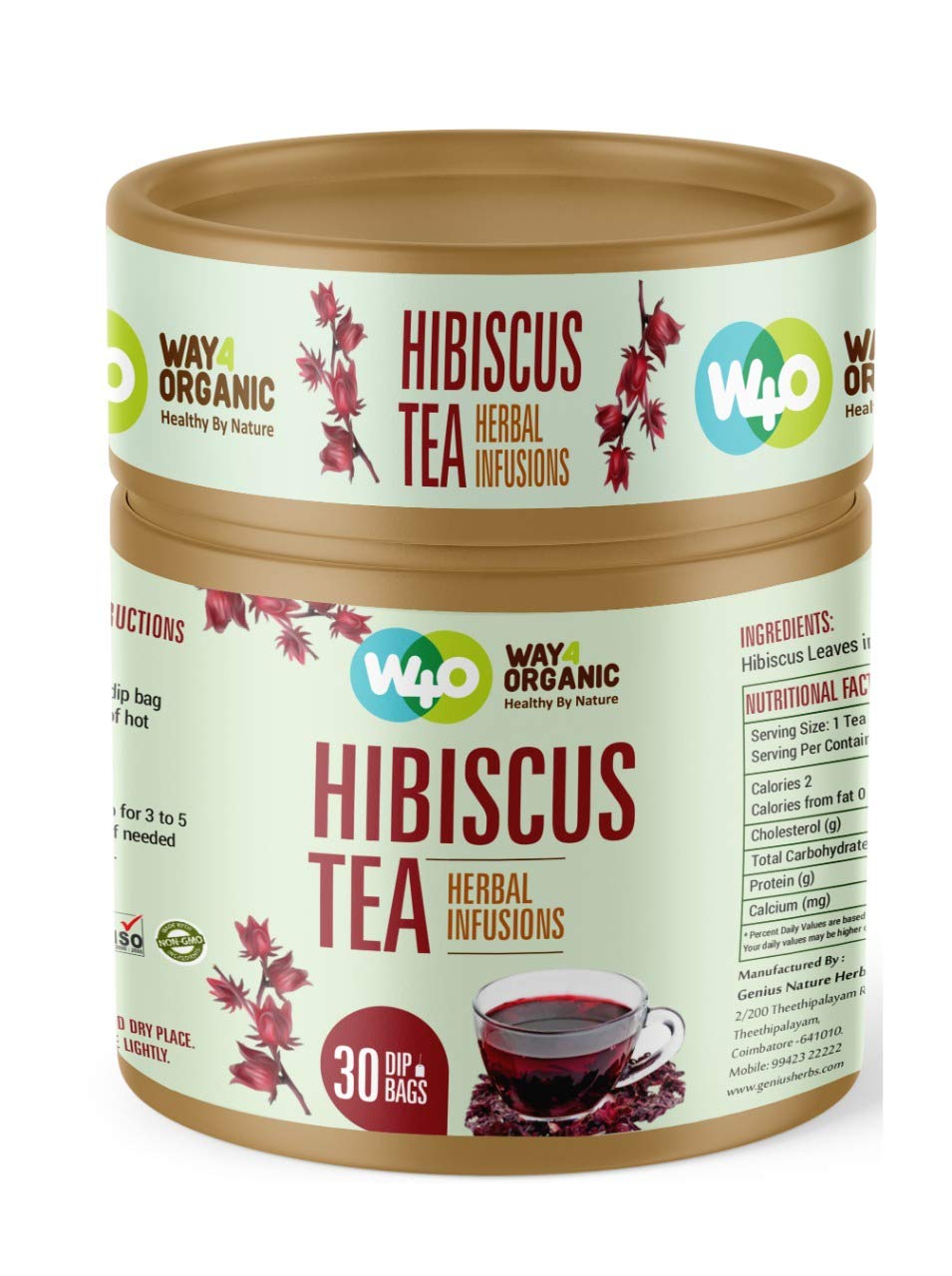 WAY4ORGANIC Hibiscus Tea Healthy Heart tea Hibiscus Subdariffa tea Rosella Dip Tea Bags :