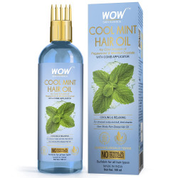 Care for your greasy scalp, dull hair and tired, stressed out scalp with WOW Skin Science Cool Mint Hair Oil With Comb Applicator.