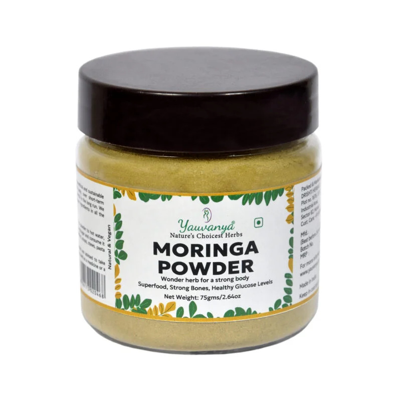 Yauvanya Moringa Powder 100% Pure & Natural fine powder of naturally dried moringa leaves. It has been traditionally consumed as healthy concoction.